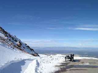 Beautiful shots, I especially like the pano shots. I've never made it to Pikes Peak so thank you for the pictures. The more you ride the Ural, the more I want to find a sidecar. Since you are running off the battery, do you avoid using the starter? I would think that a few seconds of cranking translates to many minutes less range. Looks like a great trip.