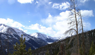 I retraced my route back towards Empire, as I didn't have enough time to cruise down the mountain towards Winter Park today. I could see an incoming front of clouds and wanted to make sure I was on the right side of the Continental Divide if it was bringing snow along with the dark clouds. The next four pictures are views of the nearby mountain peaks that one can see while riding down towards Berthoud Falls.