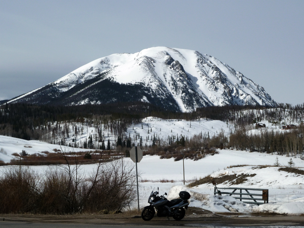 I rode into a spot called the Dillon Marina I believe, which provided these nice views of the frozen-over reservoir and bordering mountain peaks.