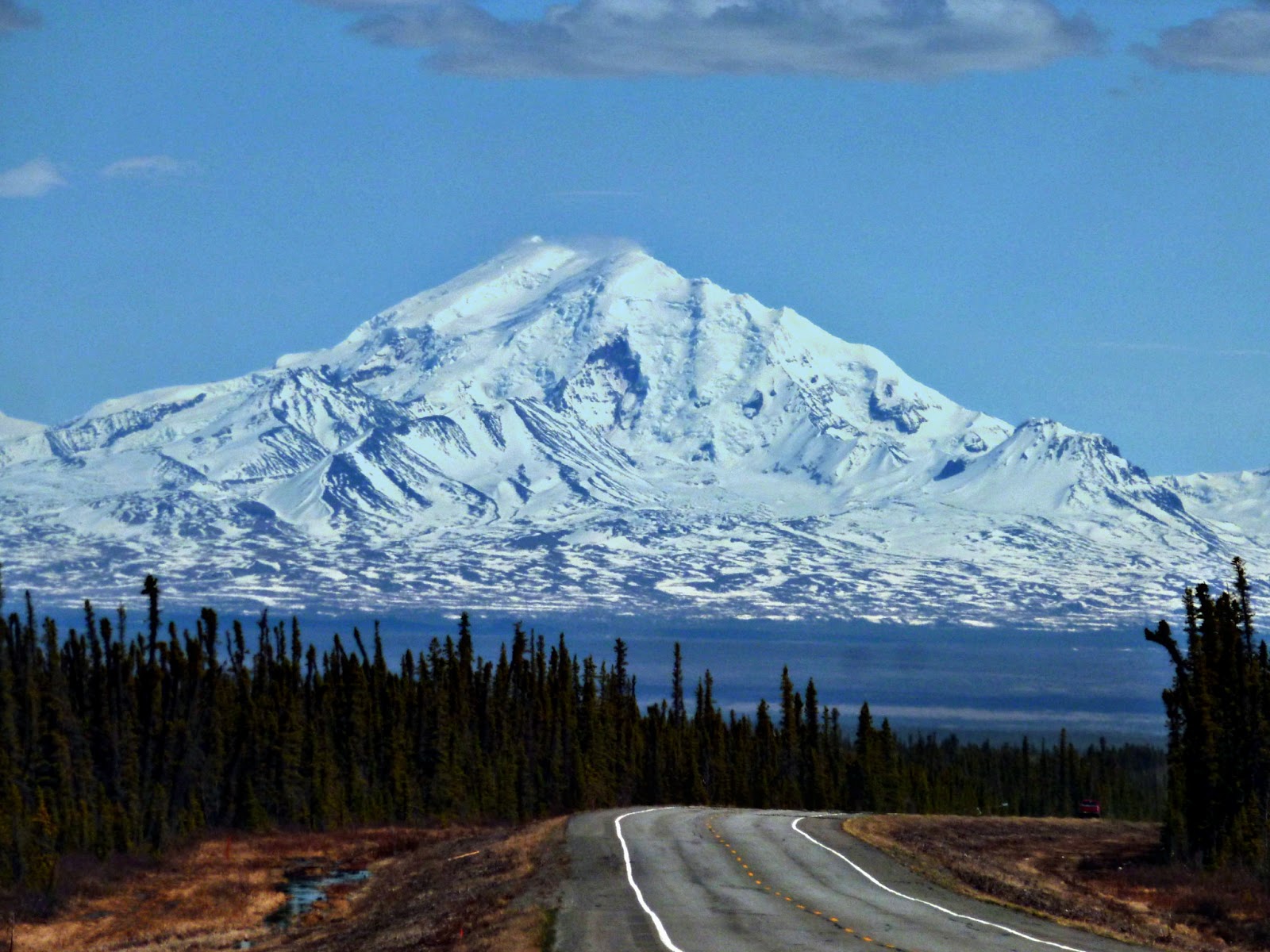 As I approached Glennallen, I could see that Mount Drum was not hidden by clouds today as it had been the last two times I'd ridden near Glennallen!