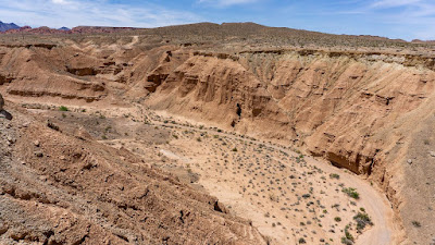 One accesses the Mormon Mesa via a dirt road that climbs one of the shallower sides of the mesa: